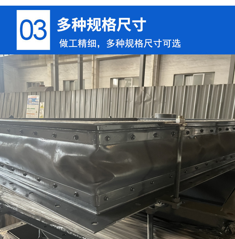 5、非金屬矩形膨脹節良好的耐 高溫、耐 腐蝕性:選用的氟橡膠、有機硅材料具有較好的耐 高溫和耐 腐蝕性能。